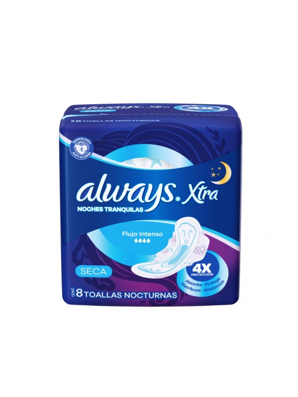 TOALLITAS FEMENINAS XTRA TRIPLE PROTEC. NOCHE SECA X8 (COD 14082)