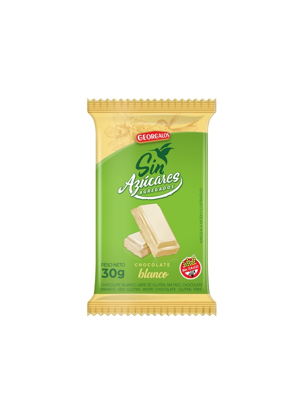 CHOCOLATE GEORGALOS SIN AZUCAR BLANCO 30GR X12U (COD 2424)