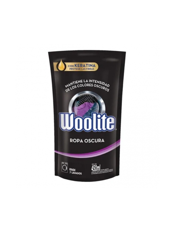 CARACTERISTICAS PRINCIPALES: • Marca: Woolite • Tipo de envase: Unidad • Contenido: 450ml • Cantidad por bulto: 12 unidades de 450ml